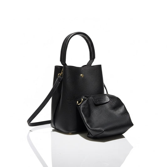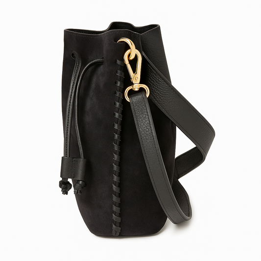 Schwarze Crossbody Tasche Leder Wildleder | Goldkette